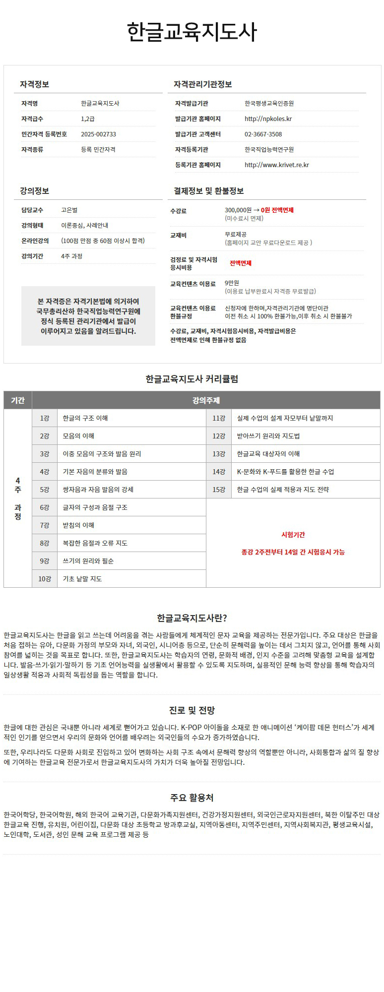¤ý¼ö°·á : ¤ý±³Àçºñ : ¹«·áÁ¦°ø(±³¾È ¹«·á´Ù¿î·Îµå Á¦°øÀ¸·Î ÀÎÇÑ È¯ºÒ±ÔÁ¤ ¾øÀ½) ¤ý°ËÁ¤·á ¹× ÀڰݽÃÇè ÀÀ½Ãºñ¿ë : Àü¾×¸éÁ¦(Àü¾×¸éÁ¦·Î ÀÎÇÑ È¯ºÒ±ÔÁ¤ ¾øÀ½) ¤ý±³À°ÄÁÅÙÃ÷ÀÌ¿ë·á : 9¸¸¿ø(ÀÌ¿ë·á ³³ºÎ¿Ï·á½Ã ÀÚ°ÝÁõ¹«·á¹ß±Þ) ¤ý±³À°ÄÁÅÙÃ÷ ÀÌ¿ë·á ȯºÒ±ÔÁ¤ : ½ÅûÀÚ¿¡ ÇÑÇϸç, Àڰݰü¸®±â°ü¿¡ ¸í´ÜÀ̰ü ÀÌÀü Ãë¼Ò ½Ã 100% ȯºÒ°¡´É, ÀÌÈÄ Ãë¼Ò ÀÌÈÄ Ãë¼Ò ¶Ç´Â °³ÀÎÀڰݹøÈ£¸¦ º»ÀÎÈ®ÀÎÇÑ ÈÄ È¯ºÒºÒ°¡ |