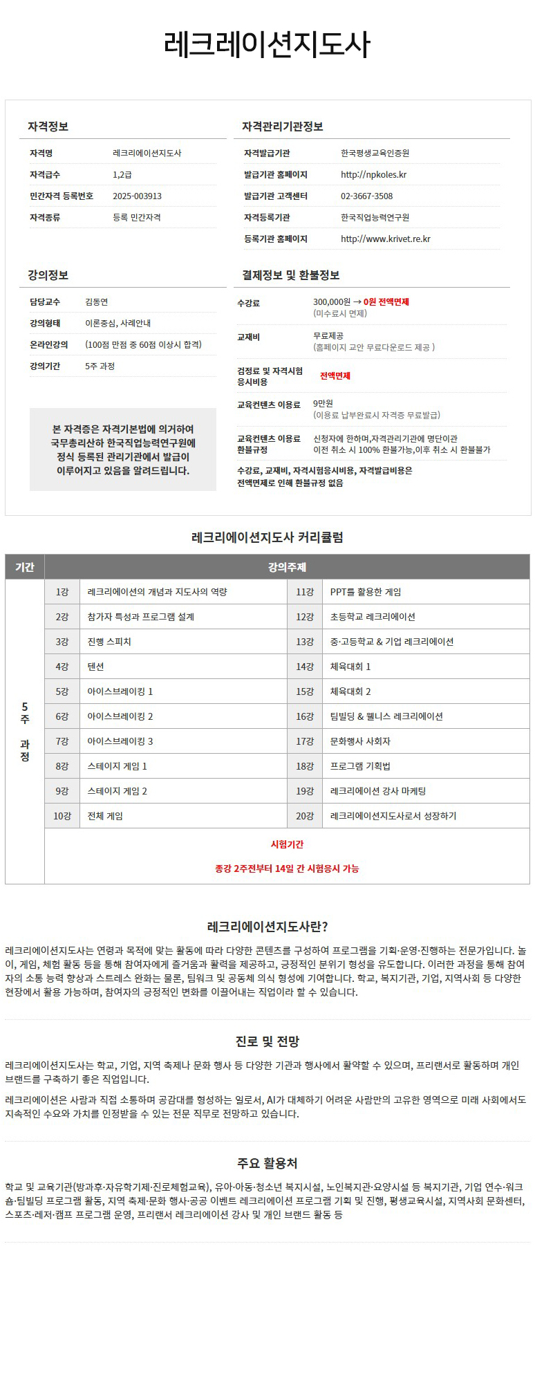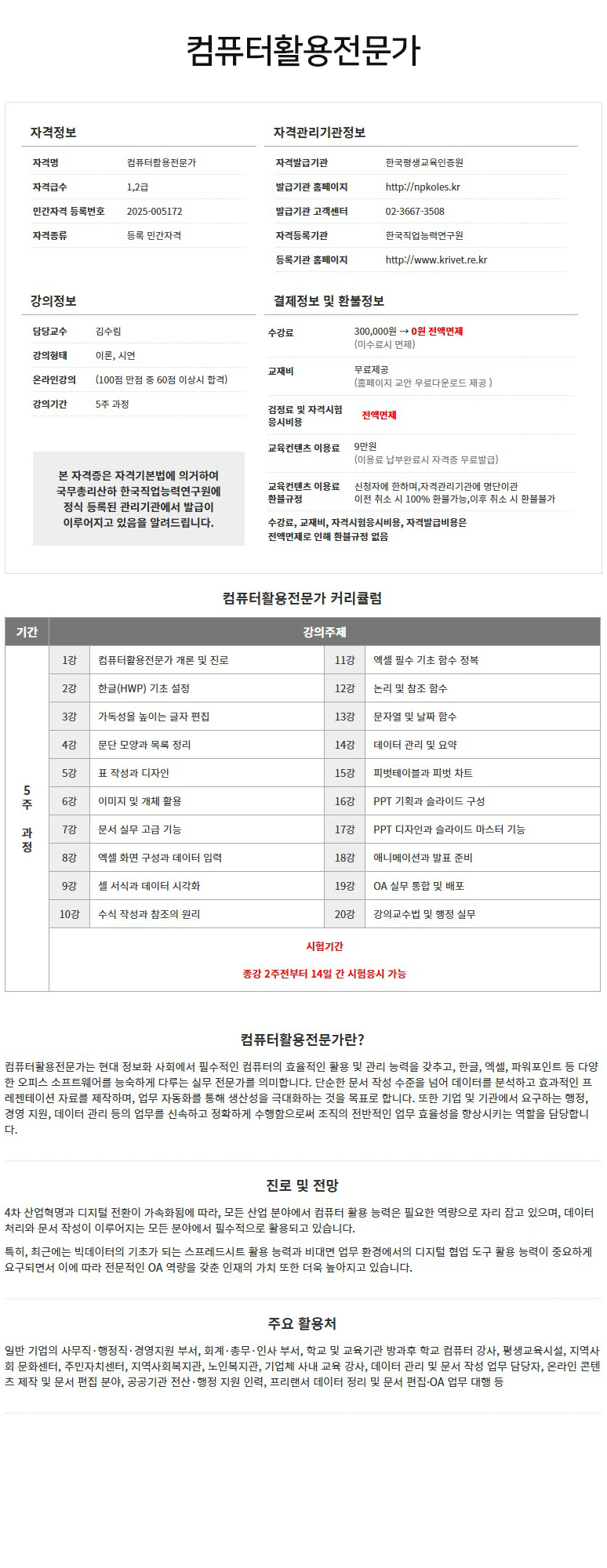 ¤ý¼ö°·á : ¤ý±³Àçºñ : ¹«·áÁ¦°ø(±³¾È ¹«·á´Ù¿î·Îµå Á¦°øÀ¸·Î ÀÎÇÑ È¯ºÒ±ÔÁ¤ ¾øÀ½) ¤ý°ËÁ¤·á ¹× ÀڰݽÃÇè ÀÀ½Ãºñ¿ë : Àü¾×¸éÁ¦(Àü¾×¸éÁ¦·Î ÀÎÇÑ È¯ºÒ±ÔÁ¤ ¾øÀ½) ¤ý±³À°ÄÁÅÙÃ÷ÀÌ¿ë·á : 9¸¸¿ø ÄÜÅÙÃ÷ ÀÌ¿ë·á ³³ºÎ ¿Ï·á ½Ã ÀÚ°ÝÁõ ¹«·á¹ß±Þ ¼ö·á ÄÁÅÙÃ÷ ÁøÇà ½Ã¿¡¸¸ ³³ºÎ ¤ý±³À°ÄÁÅÙÃ÷ ÀÌ¿ë·á ȯºÒ±ÔÁ¤ : ½ÅûÀÚ¿¡ ÇÑÇϸç, Àڰݰü¸®±â°ü¿¡ ¸í´ÜÀ̰ü ÀÌÀü Ãë¼Ò ½Ã 100% ȯºÒ°¡´É, ÀÌÈÄ Ãë¼Ò ÀÌÈÄ Ãë¼Ò ¶Ç´Â °³ÀÎÀڰݹøÈ£¸¦ º»ÀÎÈ®ÀÎÇÑ ÈÄ È¯ºÒºÒ°¡ |